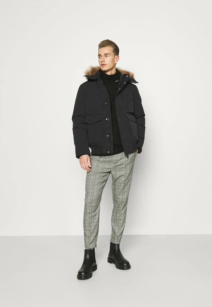 - Details: Elasticated waist, button row, lined fastener, Two-way zipper